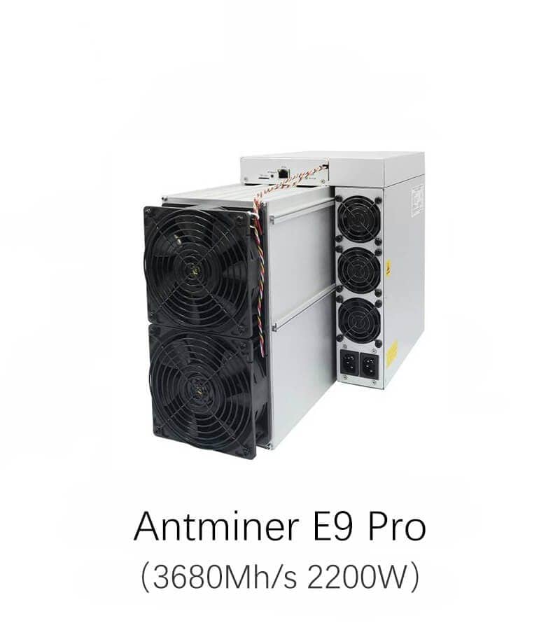 Antminer E9 Pro (3.78Gh) from Bitmain mining EtHash algorithm with a maximum hashrate of 3.78Gh/s for a power consumption of 2200W.